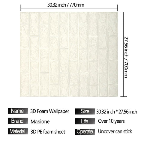 Safe and Environmentally: The wall panel is made of 3D brick foam wallpaper, no heavy harmful metals, high quality that ensure the safety of family